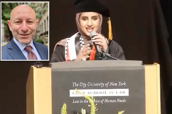 2023年法学院毕业生法蒂玛·穆萨·穆罕默德在5月12日的演讲中指责以色列不分青红皂白地谋杀巴勒斯坦人后,该市法学院面临强烈反对。她还抨击纽约警察局是“法西斯主义者”,同时呼吁一场“革命”,挑战司法体系的“白人至上主义”。