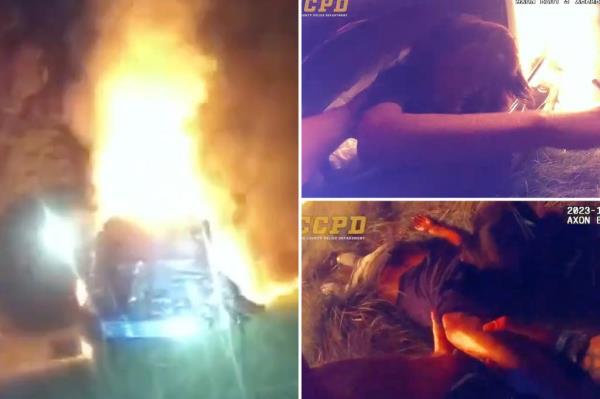 一段惊心动魄的视频显示,佐治亚州一名警察在一场时速超过100英里的高速追逐后,从一辆燃烧的残骸中救出了一名尖叫的女子。