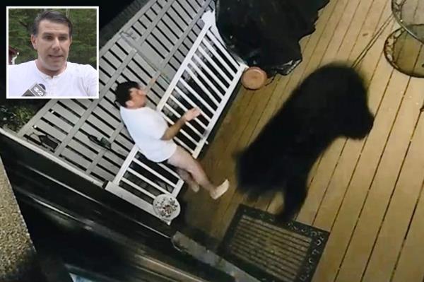 新泽西州的一对夫妇去看他们的狗时,遇到了一只追逐狗狗的熊,差点闯入他们的房子,这让他们吓了一辈子。